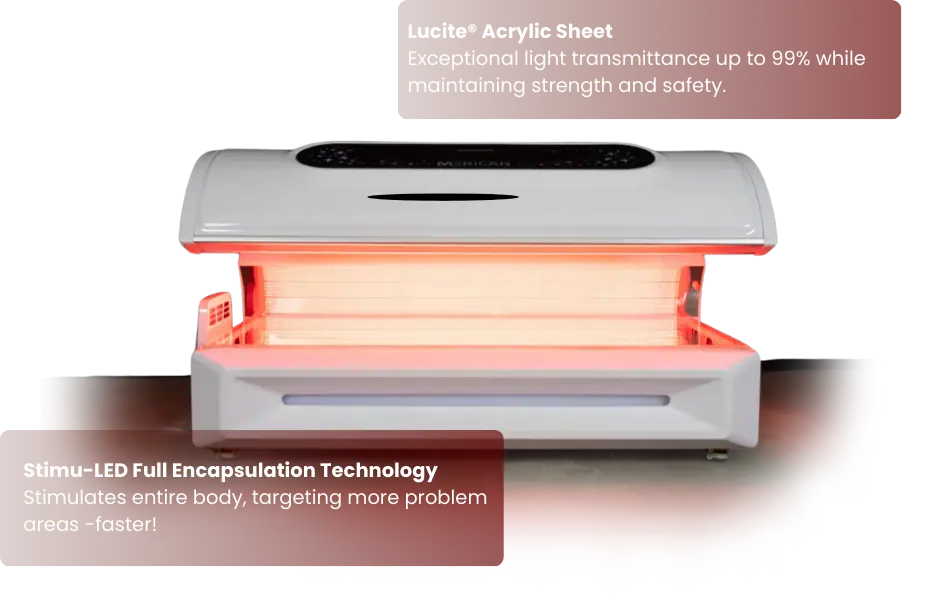 The Radiance red light therapy bed for home and commercial use is popular in recovery, health, and beauty centers. With the combination multi-wave spectrum, each independent wavelength provides different benefits and results.